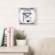 Horloge des systèmes d'alarme. Un homme en haut d'une échelle installe une alarme de sécurité sur le mur d'une maison. Ajoutez le nom de votre entreprise. Comprend un arrière - plan à face d'horloge faible. Horloge du bureau de la société de sécurité,