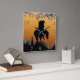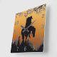 Native Warrior on Horse in Mountians, L'horloge murale emblématique de Trail's End. Customisez ce design avec votre propre photo et texte pour un cadeau personnalisé.