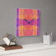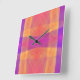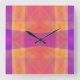L'horloge en vitraux de couleur tropicale a rose, violet, orange et jaune en gradients qui ressemblent à des rayons de soleil.