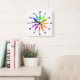 Carrée Horloge - Feuilles de roue couleur sur blanc