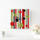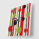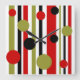 Des rayures et des pointes funky rétro horloge a des rayures vert olive, noir, rouge et blanc et des points pour un look vintage amusant.