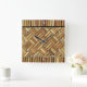 Motif de tressage de panier dans la conception de mur en brique de la photographie. Rouge, orange et nuances de jaune dans les couleurs de brique. Les nombres blancs ont un effet d'ombre portée.