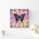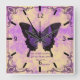 Carrée Horloge Mur Acrylique Papillon Pourpre/Noir Dit