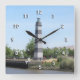 Phare sur le port de Suisun, Suisun City, Comté de Solano, Californie. Construit en 2006, 15 m de haut. Le ciel bleu et l'eau placide soulignent les rayures gris clair et foncé de ce repère. Chiffres blancs avec ombre portée.