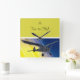 Photo de l'avion modèle - plans originaux : conçu par prise de bec Snyder et John Muir. Les striations graphiques jaunes et bleues créent le "ciel" - le texte lit la "heure de voler !" avec le numéro 12 en position élevée "de 12 heures".