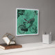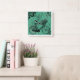 Vélo Turquoise vintage, unique et magnifique avec un vélo vintage avec un panier de fleurs et un arrière - plan turquoise muet avec des oiseaux et des tourbillons noirs.