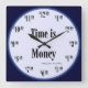 Carrée Le temps, c'est de l'argent horloge - texte bleu