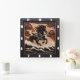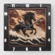 Carrée Vague sculptée Galloping Bois Horloge Cheval