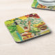Cet ensemble de six dessous de verre avec du liège en arrière fait un cadeau parfait hôtesse d'été, une douche en faveur ou pour votre propre usage. Belle conception colorée de vin, fromage, pains, fruits sur carreaux mexicains verts et blancs.