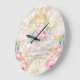 Carriage and Pink Flowers Fairy Tale Wedding Large Clock