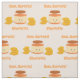 Fabric with a smiling jar of carrot baby food. This cartoon illustration includes stacks of sliced carrots. The design includes a customizable name and the words “Yum, Carrots!”