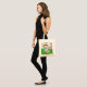 A cotton carrier bag with two sides. Page A: A boy on a green meadow with a calf and a red barn, blue sky and white clouds. Page B: Green meadow, blue sky with white clouds, a boy with a calf and a tractor in the background. There's another bird flying in the sky.