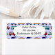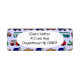 These return address labels have a novelty design of trucks and buses in red, blue, green, and brown on a field of light blue.