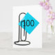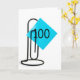 Une note de rappel aqua sur un clip en papier noir géant sur blanc pour un 100e anniversaire. L'âge peut être changé sur le texte avant et intérieur.