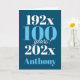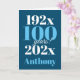 Une magnifique carte d'anniversaire de typographie bleue. Ce design à thème date est la façon parfaite de souhaiter à quelqu'un un un "heureux 100e anniversaire". Personnalisez avec notre propre nom et message personnalisé. Typographie bleue et blanche sur un arrière - plan bleu.