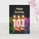 Un gâteau d'anniversaire avec des bougies. Les bougies sont composées du numéro 101, pour un 101ème anniversaire. Une carte d'anniversaire adaptée à tous.