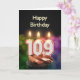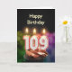 Un gâteau d'anniversaire avec des bougies. Les bougies sont composées du numéro 109, pour un 109ème anniversaire. Une carte d'anniversaire adaptée à tous.