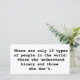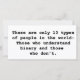 Il n'y a que 10 types de personnes dans le monde : ceux qui comprennent le binaire et ceux qui ne le comprennent pas.