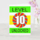 Carte de 10e anniversaire pour un joueur vidéo. N'importe quel joueur d'ordinateur aimera cette carte. Avec le slogan Niveau 10 Déverrouillé, ceci est sûr d'obtenir un grand sourire de quiconque aime jouer à des jeux d'ordinateur.