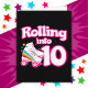 Ce design de fête de patinage est parfait pour une fête de patinage à rouleaux ou un thème d'anniversaire pour une fille de 10 ans. Si la fille d'anniversaire aime le roller skate, elle ADORE ce skate party design! Caractéristiques style rétro 'Rolling in 10' anniversaire citation avec roller cool graphique avec arc-en-ciel & étoiles qui est amusant et unique. Fun roller skate design pour le 10e anniversaire d'une fille!