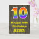 La façade de cette carte de voeux colorée mais rustique d'anniversaire dispose d'un grand nombre de "10" avec un motif inspiré par un dégradé du spectre arc-en-ciel. Il comporte également le message "Joyeux 10e anniversaire", et un nom de destinataire modifiable. L'arrière - plan à l'avant de la carte est doté d'un motif rustique imitant le grain de bois. L'intérieur comporte un message de voeux d'anniversaire personnalisé, ou peut-être pourrait-il être effacé et laissé vide si un message doit être écrit à la main à la place. Une carte d’anniversaire personnalisée comme celle-ci pourrait être une façon amusante de célébrer le dixième anniversaire de quelqu’un. [~Z0000419]
