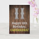 Cette carte de voeux inspirée du pays et de l'American Old West à thème d'anniversaire est décorée d'un grand numéro de look rustique "11", le message "Happy 11th Birthday," un nom modifiable, et un faux/imitation grain de bois inspiré look motif arrière - plan. L'intérieur a un message de voeux d'anniversaire modifiable, ou peut-être peut-être être effacé et laissé vide si un message doit être écrit à la main à la place. Une carte de voeux d’anniversaire modifiée comme celle-ci pourrait être envoyée pour célébrer le onzième anniversaire de quelqu’un. [~Z0000469]