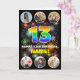 La façade de cette carte de voeux d'anniversaire amusante et joyeuse comporte un grand numéro "13" avec un motif dynamique du spectre arc-en-ciel inspiré, avec le message "HAPPY 13th BIRTHDAY," et un nom personnalisé, sur un feu d'artifice multicolore inspiré motif. Près du haut et du bas de l’avant se trouvent des images qui peuvent être customisées, peut-être avec des photos de la famille et des amis du bénéficiaire. L'intérieur comporte un message de voeux d'anniversaire customisé, ou peut-être pourrait-il être effacé et laissé vide si un message doit être écrit à la main à la place. Une carte de voeux d’anniversaire customisée et audacieuse comme celle-ci pourrait être envoyée pour célébrer le treizième anniversaire de quelqu’un. (Photographie © Storytree Studios, Stanford, CA.) [~Z0000660]