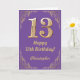 Carte 13e anniversaire Parties scintillant violet et or