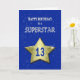 Carte de 13ème anniversaire pour une superstar. Une grande étoile dorée portant l'âge flotte dans les cieux. Dans l'arrière - plan, les étoiles scintillent. Une belle carte d'anniversaire pour quelqu'un de très spécial.