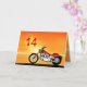 Une moto semblable à une Harley debout au bord de la mer avec un glorieux coucher de soleil orange. Une grande carte pour tous ceux qui aiment le vélo et les motos.Voir toute la gamme de cartes pour les âges et les relations dans mon magasin. Toutes les oeuvres d'art copyright Norma Cornes
