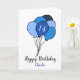 Carte de 14ème anniversaire avec un bouquet bleu de ballons design. Cette carte a un look moderne et est parfaite pour un fils, petit-fils ou neveu à son quatorzième anniversaire. L'âge, le nom du garçon et le message intérieur peuvent tous être customisés comme souhaité.