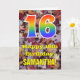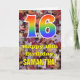 L'avant de cette carte de voeux d'anniversaire colorée, d'inspiration nature et rustique comporte un grand numéro "16" avec un motif inspiré par un gradient de spectre arc-en-ciel, ainsi que le message "Happy 16th Birthday," et un nom personnalisé. L'avant est ornée d'un arrière - plan représentant des feuilles d'automne tombées rustiques. L'intérieur comporte un message d'anniversaire personnalisé, ou pourrait être effacé et laissé vide si un message doit être écrit à la main à la place. Une carte d’anniversaire personnalisée comme celle-ci pourrait être une façon amusante de reconnaître le seizième anniversaire de quelqu’un. [~Z0000384]