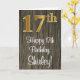 Cette conception sophistiquée, luxueuse et élégante de carte de voeux d'anniversaire comporte un grand numéro ordinal "17th" avec un motif dégradé d'inspiration fausse/imitation or, ainsi que le message de voeux d'anniversaire "Happy 17th Birthday," et un nom personnalisable dans une police de style script sur le devant. Il a également un faux motif arrière - plan d'inspiration bois sur le devant. L'intérieur a un message d'anniversaire personnalisé, ou peut-être peut-être être effacé et laissé vide si un message doit être écrit à la main à la place. Une carte de voeux d'anniversaire élégante et modifiable comme celle-ci pourrait être une façon amusante d'envoyer des voeux d'anniversaire à quelqu'un qui célèbre son dix-septième anniversaire. [~Z0000519]