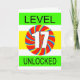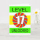 Carte de 17ème anniversaire pour un joueur vidéo. N'importe quel joueur d'ordinateur aimera cette carte. Avec le slogan Niveau 17 Déverrouillé, ceci est sûr d'obtenir un grand sourire de quiconque aime jouer à des jeux d'ordinateur.