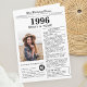Say happy birthday with this unique Newspaper style birthday card, including a photo of the recipient and a collection of fun facts and world news from 1996. Get creative and create a personalized keepsake. Designed to resemble a vintage newspaper in classic black and white style. A cute and fun way to celebrate the nineties!