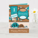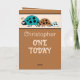 Personnalisez cette carte de voeux d'anniversaire pour un 1er / premier anniversaire. 1 aujourd'hui / ou changer l'âge en fonction / tout âge. Conçu en bleu turquoise, marron, beige, vert avec une jolie famille ladybug / ladybird. Ajoutez un nom. Joyeux anniversaire Je vous souhaite un anniversaire spécial.