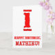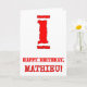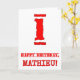 Ce design amusant de carte de voeux d'anniversaire comporte un grand numéro rouge "1" ayant une apparence inspirée par un tampon, ainsi que le message de voeux d'anniversaire "HAPPY BANTHDAY", et un nom personnalisable sur le devant. L'intérieur a un message de voeux d'anniversaire personnalisé, ou peut-être peut-être être effacé et laissé vide si un message doit être écrit à la main à la place. Une carte de voeux d’anniversaire personnalisable comme celle-ci pourrait être utilisée pour célébrer le premier anniversaire de quelqu’un. [~Z0000524]