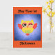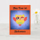 Cute and non-scary owl with message "May Your 1st Halloween Be A Happy Hoot'in One ! Happy Halloween", est featured on this greeting card for baby's first Halloween !