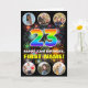 L'avant de cette carte de voeux joyeuse et passionnante à thème d'anniversaire comprend un grand nombre de "23" ayant un motif multicolore inspiré du spectre arc-en-ciel, avec le message "HAPPY 23rd BIRTHDAY," et un nom personnalisé, sur un motif inspiré par des feux d'artifice multicolores éclatants. Près du haut et du bas de l’avant se trouvent des images qui peuvent être customisées, peut-être avec des photos de la famille et des amis du bénéficiaire. L'intérieur a un message de voeux d'anniversaire modifiable, ou peut-être peut-être être effacé et laissé vide si un message doit être écrit à la main à la place. Une carte de voeux d’anniversaire excitante et modifiable comme celle-ci pourrait être envoyée pour célébrer le vingt-troisième anniversaire de quelqu’un. (Photographie © Storytree Studios, Stanford, CA.) [~Z0000660]