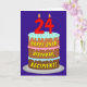 Le devant de cette carte de voeux joyeuse et amusante à thème d'anniversaire présente une représentation d'un gâteau d'anniversaire à trois niveaux avec des bougies en forme de chiffres sur le dessus montrant le numéro "24", avec le message "HAPPY 24TH BIRTHDAY", et un nom de destinataire personnalisé. L'intérieur a un message de voeux d'anniversaire personnalisé, ou peut-être peut-être être effacé et laissé vide si un message doit être écrit à la main à la place. Une carte de voeux d'anniversaire joyeuse et personnalisable comme celle-ci pourrait être une façon amusante de livrer des voeux d'anniversaire à quelqu'un qui célèbre son vingt-quatrième anniversaire. [~Z0000620]