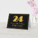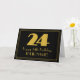 Cette carte de vœux à thème d'anniversaire inspirée de l'ère des Années folles et de l'esthétique vintage présente un grand numéro « 24 » inspiré de l'art déco, le message « Joyeux 24e anniversaire », un nom modifiable et un motif de bordure composé de fines lignes sur le devant. Le fond de la face avant est de couleur noire. L'intérieur contient un message de vœux d'anniversaire modifiable, ou pourrait éventuellement être vidé et laissé vierge si un message doit être écrit à la main à la place. Une carte de vœux d'anniversaire personnalisable comme celle-ci pourrait être utilisée pour célébrer le vingt-quatrième anniversaire de quelqu'un.