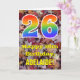 L'avant de cette carte de voeux d'anniversaire colorée, rustique et d'inspiration nature présente un grand nombre de "26" avec un motif inspiré par un gradient de spectre arc-en-ciel, ainsi que le message "Happy 26th Birthday," et un nom personnalisable. L'avant est ornée d'un arrière - plan représentant des feuilles d'automne tombées rustiques. L'intérieur comporte un message d'anniversaire personnalisé, ou pourrait être effacé et laissé vide si un message doit être écrit à la main à la place. Une carte d’anniversaire personnalisable comme celle-ci pourrait être une façon amusante de reconnaître le vingt-sixième anniversaire de quelqu’un. [~Z0000384]