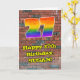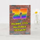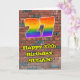 Ce graffiti urbain animé et passionnant et le dessin de rue sur le thème de la carte de voeux d'anniversaire comporte un grand nombre de "27" avec un dégradé coloré arc-en-ciel inspiré motif, avec le message "Happy 27th Birthday," et un nom modifiable. L'arrière - plan de l'avant a un motif mural en brique. L'intérieur a un message de voeux d'anniversaire personnalisable, ou peut-être peut-être être effacé et laissé vide si un message doit être écrit à la main à la place. Une carte de voeux dynamique et customisée comme celle-ci pourrait être envoyée pour célébrer le vingt-septième anniversaire de quelqu’un. [~Z0000586]