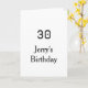 Carte 30th birthday bold letter name date simple minimal