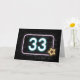 Panneau de néon brillant avec une étoile sur un mur de ville en briques foncées pour 33ème anniversaire.