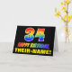 L'avant de cette carte de voeux joyeuse, colorée et amusante sur le thème de l'anniversaire comporte un grand nombre de "34" et le message "HAPPY BANTHDAY", tous deux colorés avec un motif inspiré par un gradient de spectre arc-en-ciel, ainsi qu'un nom de destinataire personnalisable jaune gras. L'avant est également orné d'un arrière - plan minimal, clair et noir. L'intérieur a un message d'anniversaire personnalisé, ou peut-être peut-être être effacé et laissé vide si un message doit être écrit à la main à la place. Une carte d’anniversaire personnalisable dynamique comme celle-ci pourrait être une façon amusante d’envoyer un message célébrant le trente-quatrième anniversaire de quelqu’un. [~Z0000472]