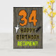 La façade de cette carte de voeux d'anniversaire effrayante et éffrayante d'Halloween comporte un grand nombre de "34", ainsi que le message "HAPPY BANTHDAY," et un nom personnalisé. Il y a aussi des représentations d'un fantôme et d'une chauve-souris sur le devant. L'intérieur comporte un message de salutation d'anniversaire personnalisé, ou peut-être pourrait-il être effacé et laissé vide si un message doit être écrit à la main à la place. Une carte d'anniversaire personnalisable comme celle-ci pourrait être une façon amusante d'envoyer des voeux d'anniversaire à quelqu'un qui célèbre son trente-quatrième anniversaire et qui est aussi né le 31 octobre (Halloween). [~Z0000410]