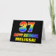 L'avant de cette carte de voeux colorée, joyeuse et amusante à thème d'anniversaire comporte un grand nombre de "37" et le message "HAPPY BANTHDAY", tous deux colorés avec un motif inspiré par un gradient de spectre arc-en-ciel, ainsi qu'un nom de destinataire personnalisé jaune gras. L'avant est également décoré d'un arrière - plan minimaliste noir. L'intérieur a un message de voeux d'anniversaire personnalisé, ou peut-être peut-être être effacé et laissé vide si un message doit être écrit à la main à la place. Une carte d’anniversaire personnalisable et dynamique comme celle-ci pourrait être une façon amusante de reconnaître le trente-septième anniversaire de quelqu’un. [~Z0000472]