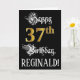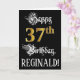 La façade de cette carte de voeux ornée et opulente d'anniversaire comporte le message "Joyeux 37e anniversaire", ainsi qu'un nom de destinataire personnalisé. Une partie du message est dans un texte de style script formel. Le grand numéro "37th" présente un motif de look imitation or. L'arrière - plan est noir de couleur. L'intérieur a un message d'anniversaire personnalisé, ou peut-être peut-être être effacé et laissé vide si un message doit être écrit à la main à la place. Une carte de voeux luxueuse et customisée comme celle-ci pourrait servir à célébrer le trente-septième anniversaire de quelqu’un. [~Z0000559]