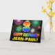 L'avant de cette carte de voeux joyeuse, colorée et amusante sur le thème de l'anniversaire comporte un grand nombre de "3" et le message "HAPPY BANTHDAY", tous deux dotés d'une couleur motif inspirée par un gradient de spectre arc-en-ciel, ainsi qu'un nom de destinataire personnalisable jaune gras. Le front a également un motif arrière - plan multicolore éclatant feux d'artifice inspiré par des . L'intérieur comporte un message de voeux d'anniversaire customisé, ou peut-être pourrait-il être effacé et laissé vide si un message doit être écrit à la main à la place. Une carte d’anniversaire personnalisée comme celle-ci pourrait être une façon amusante d’envoyer un message célébrant le troisième anniversaire de quelqu’un. [~Z0000471]